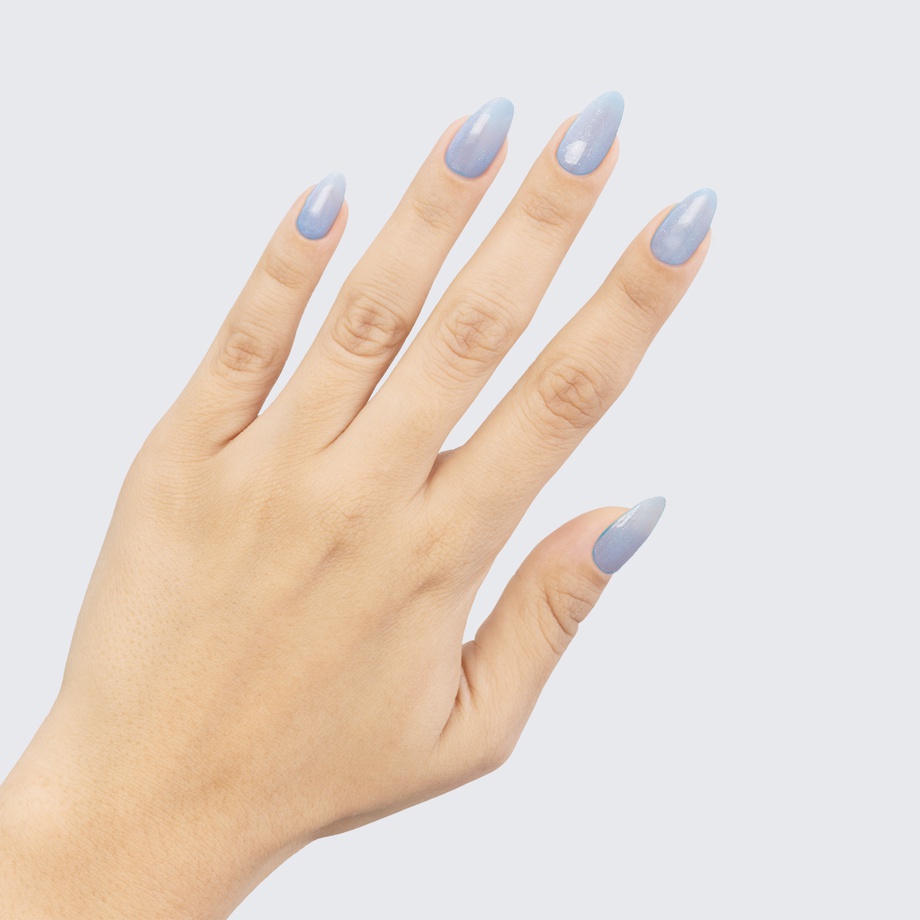 This pale periwinkle blue shimmers like fresh snow.